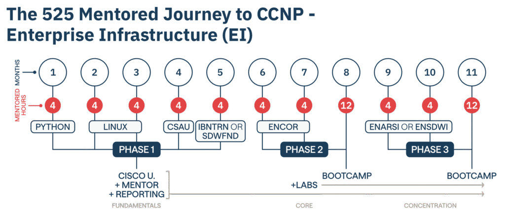 Get CCNP Enterprise Infrastructure certified with Project 525—11 months of mentoring, hands-on labs, and exam prep. Start today!